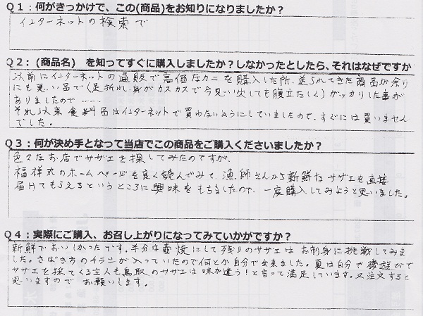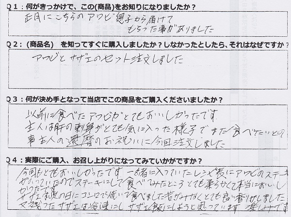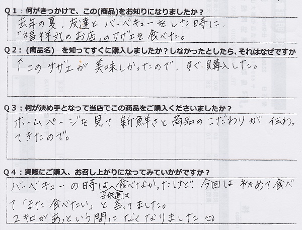 ・とても美味しかったです!今まで、よそで買っていたサザエと味や香りが全然違う・・・