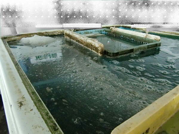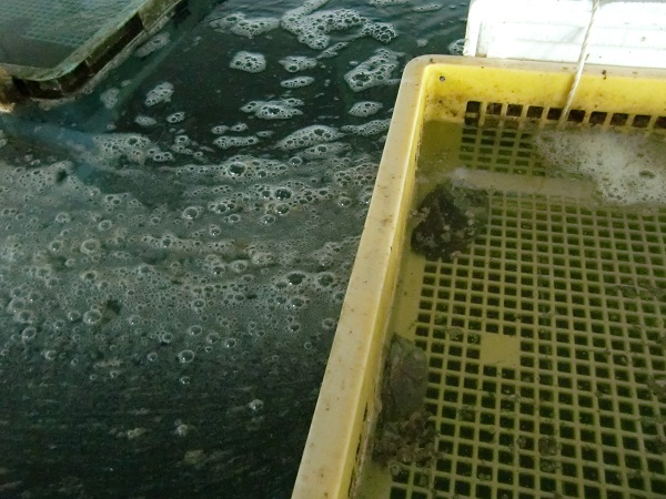 異様に泡立っているイケス。