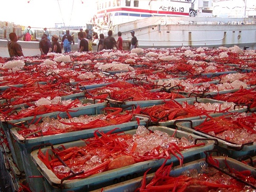(境港:紅ズワイガニの水揚げ)