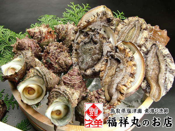 塩津灘には「奥大山の水」で有名な全国屈指の名水を源流に持つ「きのえ川」の河口があり、そのミネラル豊富な清流に育まれた美味しい海藻をたっぷりと食べて育ったサザエとアワビはひと味ちがいます!