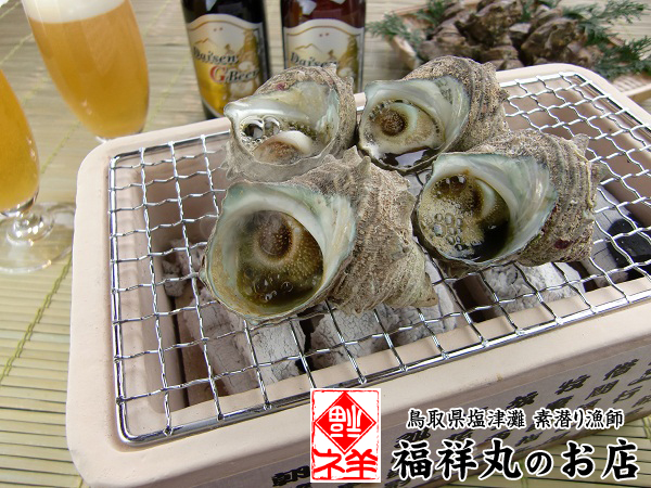 塩津灘には「奥大山の水」で有名な全国屈指の名水を源流に持つ「きのえ川」の河口があり、そのミネラル豊富な清流に育まれた美味しい海藻をたっぷりと食べて育ったサザエとアワビはひと味ちがいます!